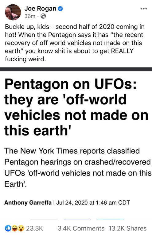 Если Министерство Обороны, точнее одна специальная программа Министерства Обороны, допускает существование неких НЛО это ещё не значит, что НЛО существуют.