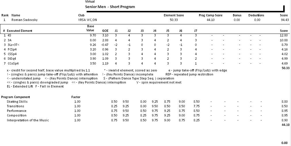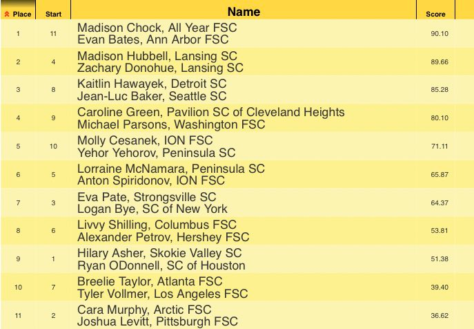 Табло: https://ijs.usfigureskating.org/leaderboard/results/2021/27989/index.asp
