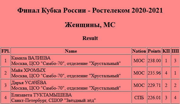 Табло: https://fsrussia.ru/results/2021/cor2021_final/index.htm