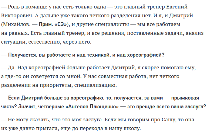 потом где то годик две после сочи на спортсе почитал о Тутберидзе, на спортсе тогда читал только о Хоккей и Лыжи, но грузинская фамилия на главном привлек мое внимание, но гордо могу сказать, дальше "интересно кто это" не читал, и никогда не болел за дистру, я не болею за Этери потому что она Грузинка, в России очень много грузины но например за Канделаки или Павлиашвили или Мамиашвили болеть я не стал и не стану.я за Этери болеть начинал где то перед ОИ, ее фамилия на спортсе стала насколько часто что Я начинал читать о нее больше и узнал кто она и как работает. Был на ее месте например Липецки или Давыдов, начинал болеть и за них.