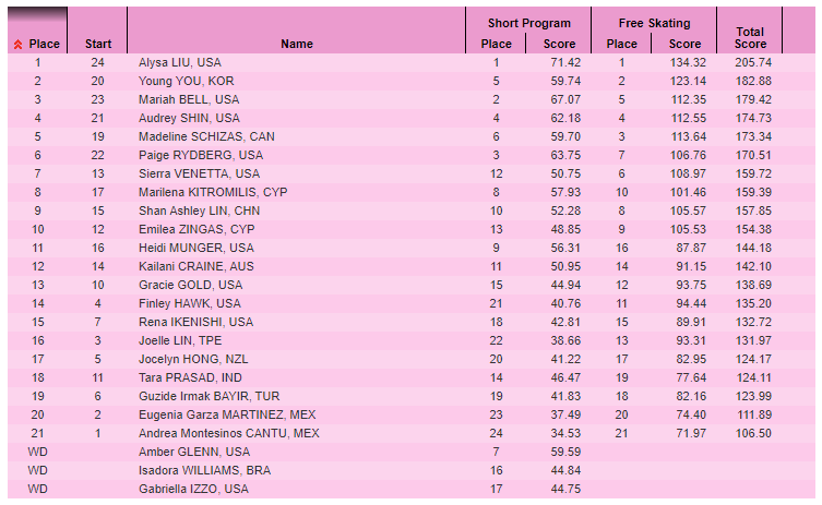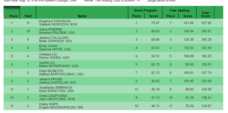 Табло: https://ijs.usfigureskating.org/leaderboard/results/2021/30084/index.asp