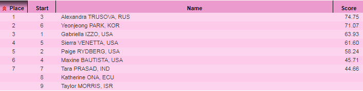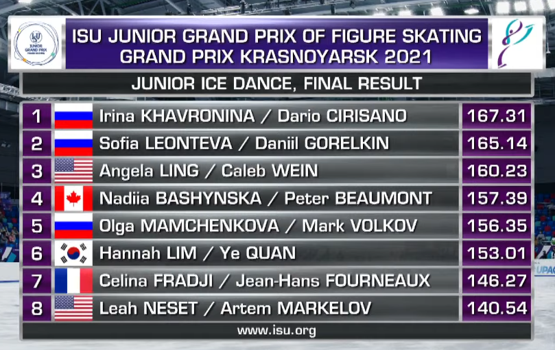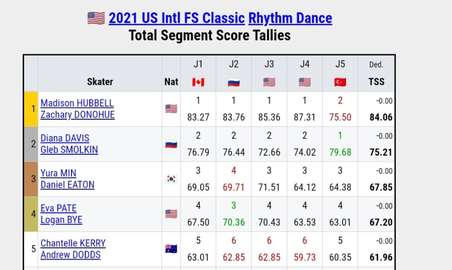 Табло: https://ijs.usfigureskating.org/leaderboard/results/2021/30212/index.asp