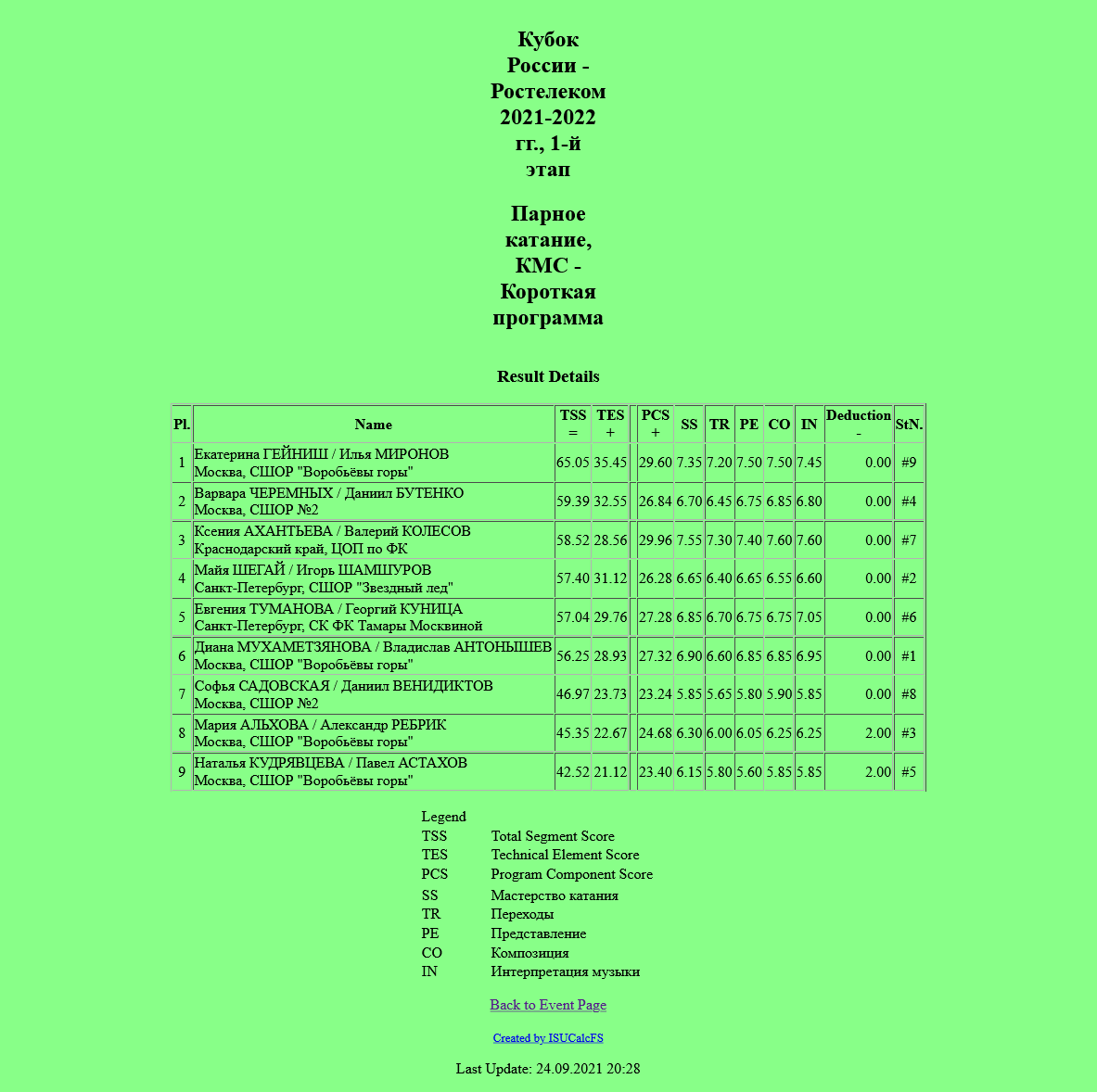 Табло: http://www.isuresults.com/results/season2122/csger2021/SEG001.htm