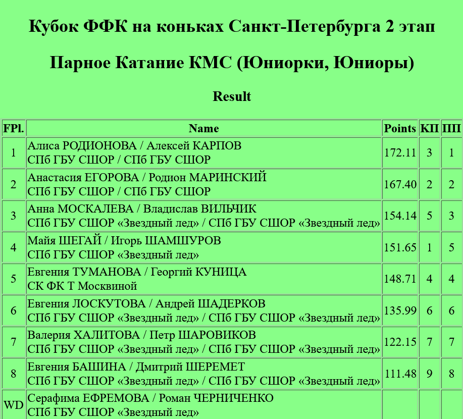 Табло: http://rez.fskating.spb.ru/images/result/2122/2_Fed/index.htm