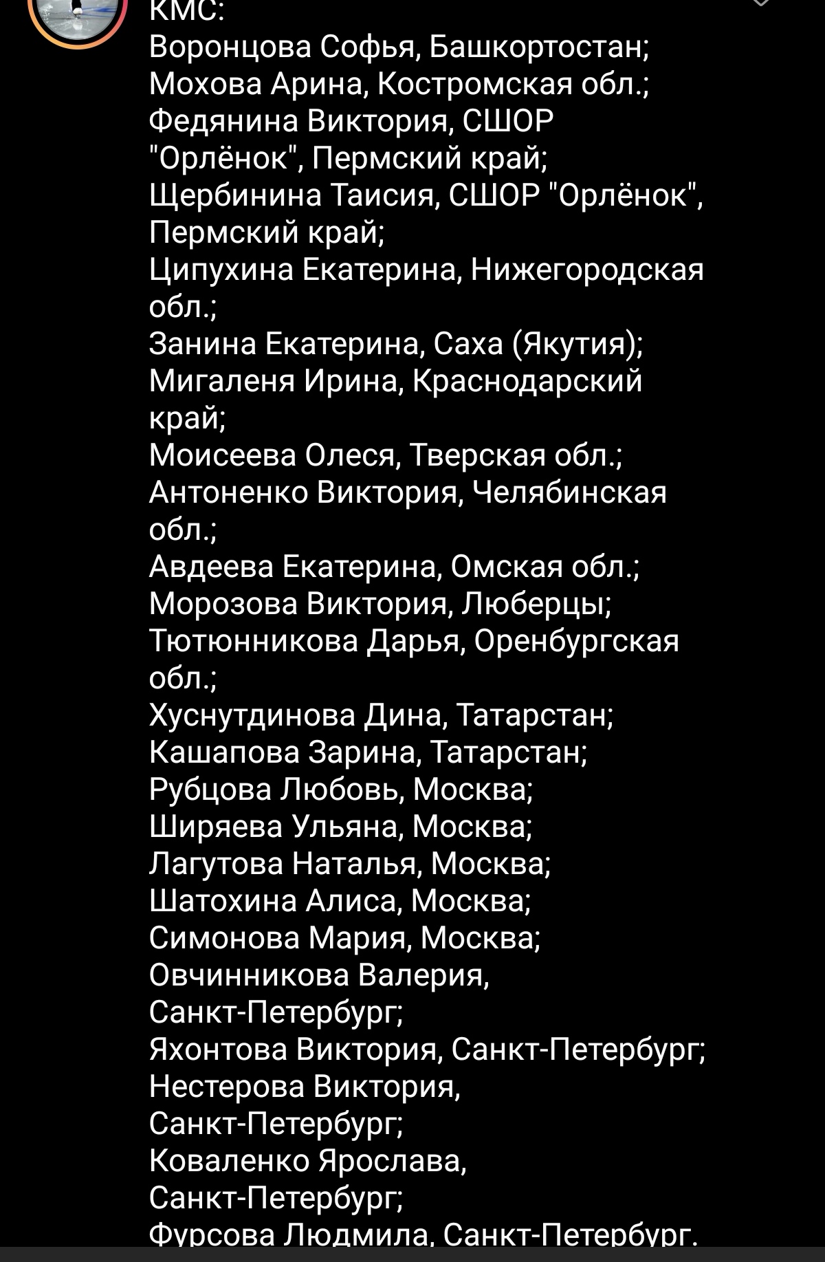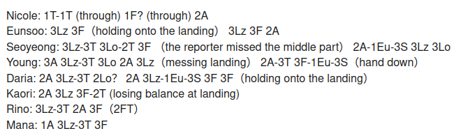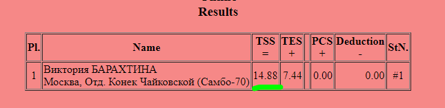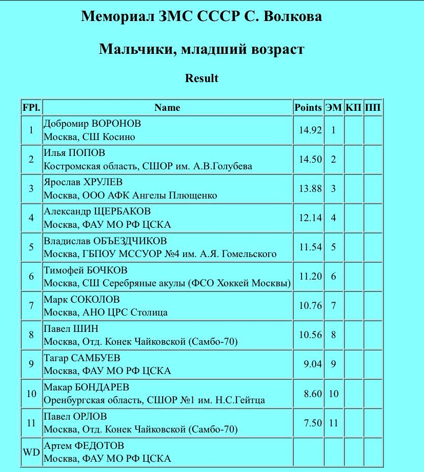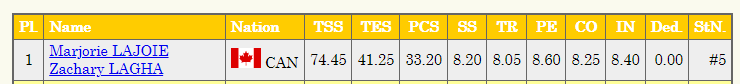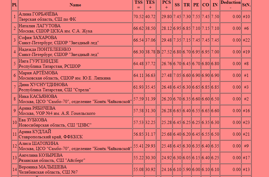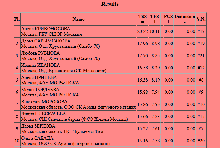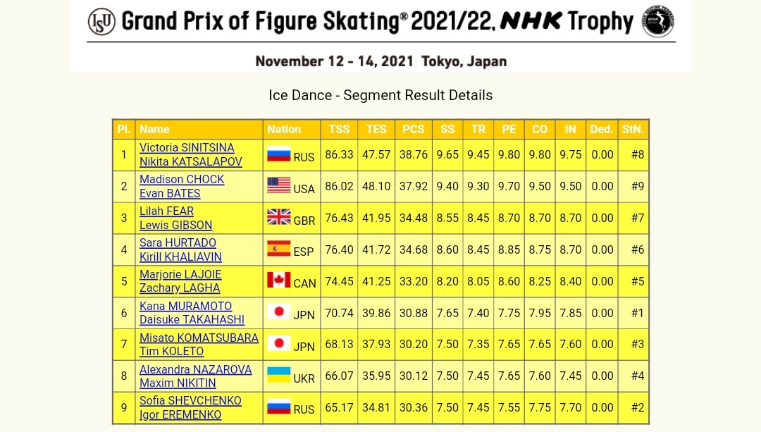 Трусик, Усача, Самокат, Молодая, Пинда, Зомарен, Магнат, Жук, Шомяк, Чухан, Немезиды, РыжиеИнфа: https://results.isu.org/events/fsevent00110994.htm