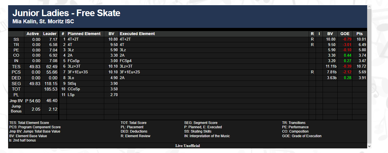 Табло: https://ijs.usfigureskating.org/leaderboard/results/2022/29546/index.asp