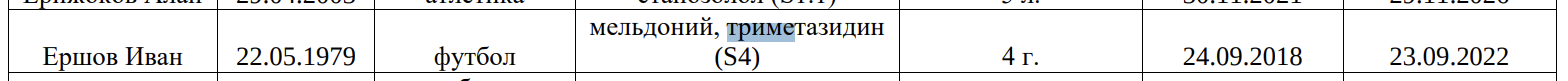 В допинг-пробе спортсменки была обнаружена запрещенная субстанция «триметазидин», относящаяся к классу S4.4 Запрещенного списка WADA 2021 года.