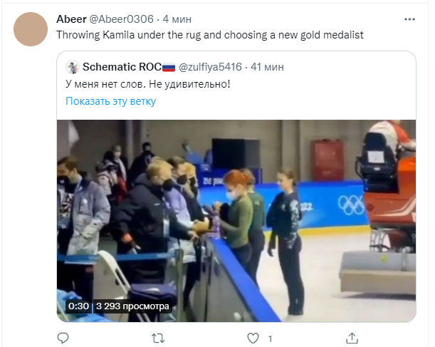 Кроме того, Олимпийский комитет России обращает внимание на тот факт, что допинг-проба спортсменки, отобранная после чемпионата Европы по фигурному катанию в январе 2022 года, а также ее допинг-проба, взятая во время Олимпийских игр, дали отрицательный результат.