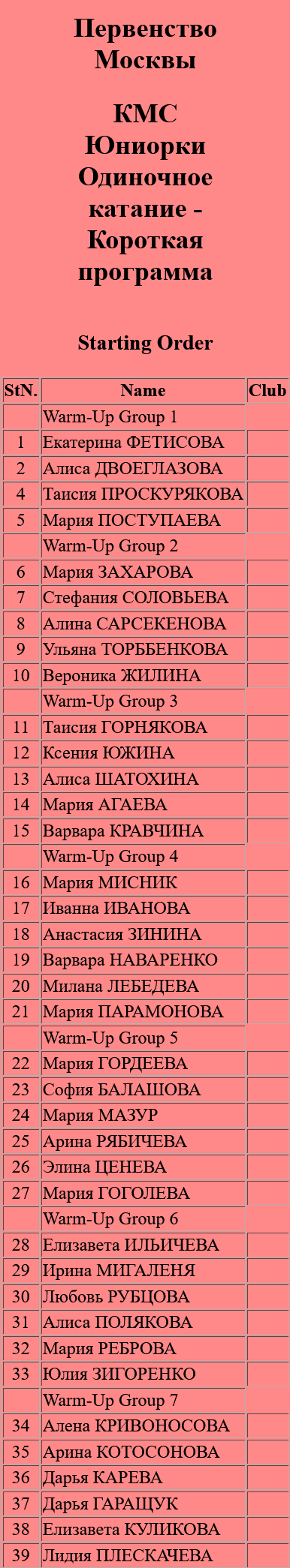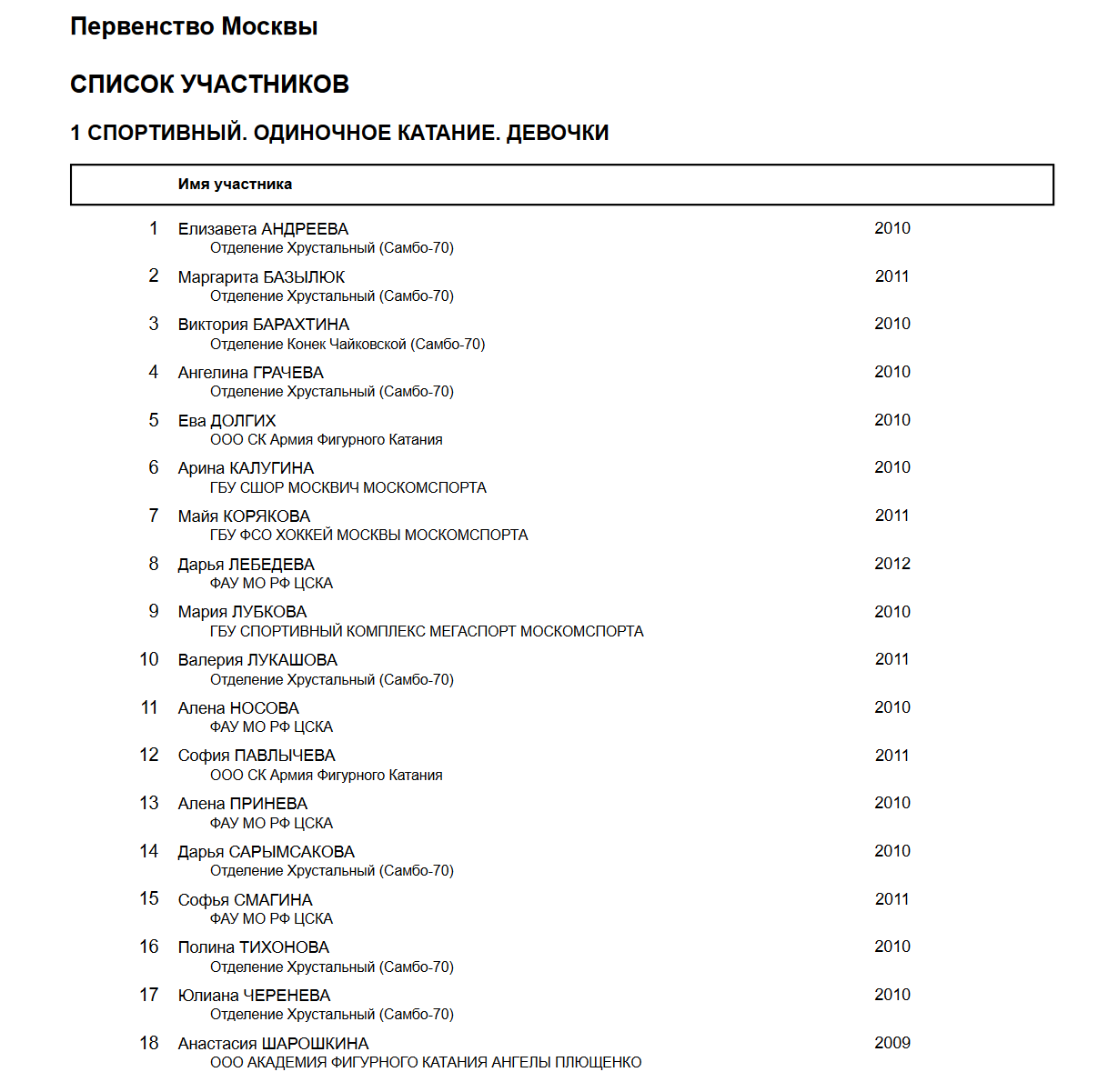 Первенство Москвы, г. Москва, Россия