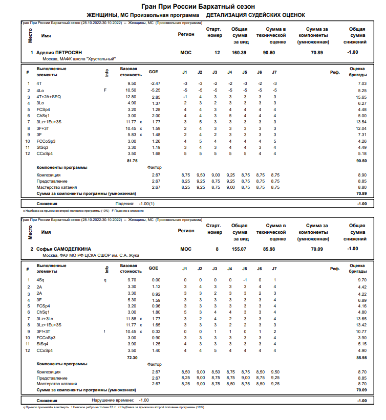 2-й этап Гран При России Ростелеком 2022: «Бархатный сезон»