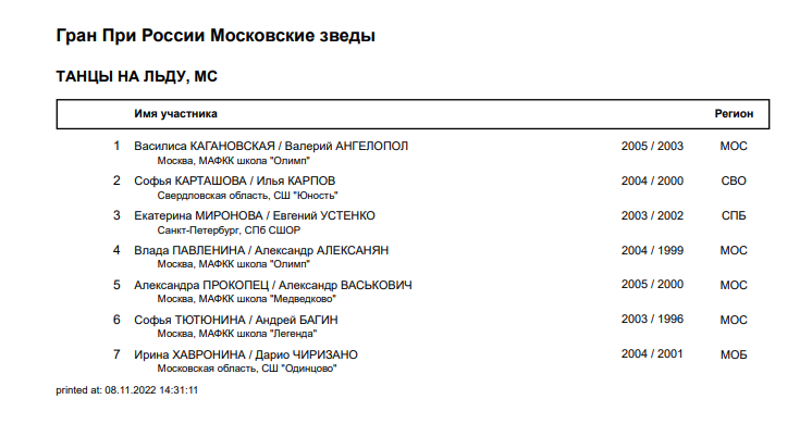 4-й этап Гран При России Ростелеком 2022: «Московские звезды»