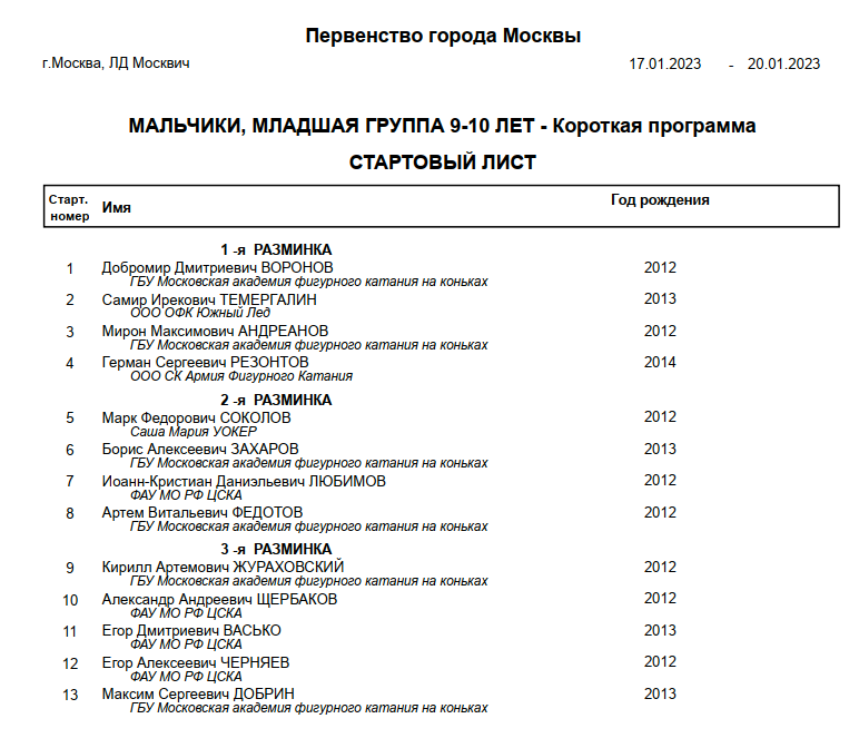 Первенство города Москвы среди юношей и девушек (младший возраст)