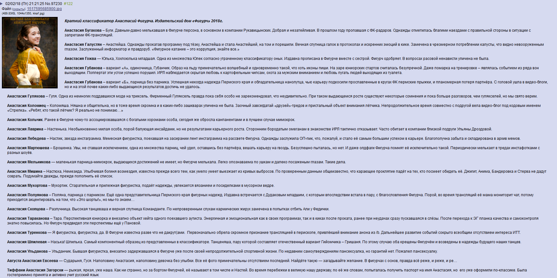 https://mega.nz/#!WtkTlYyZ!d8gRGjuH4t_r9TqChujirrx6aE3gH4Be0HyvmBwW1u4 - база фигуристов, сделано аноном