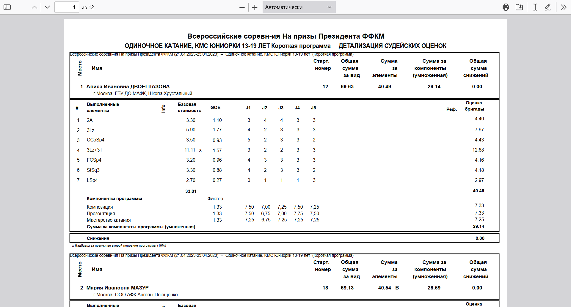 Транса: Всероссийские соревнования по фигурному катанию на коньках «На призы Президента ФФКМ», День 2