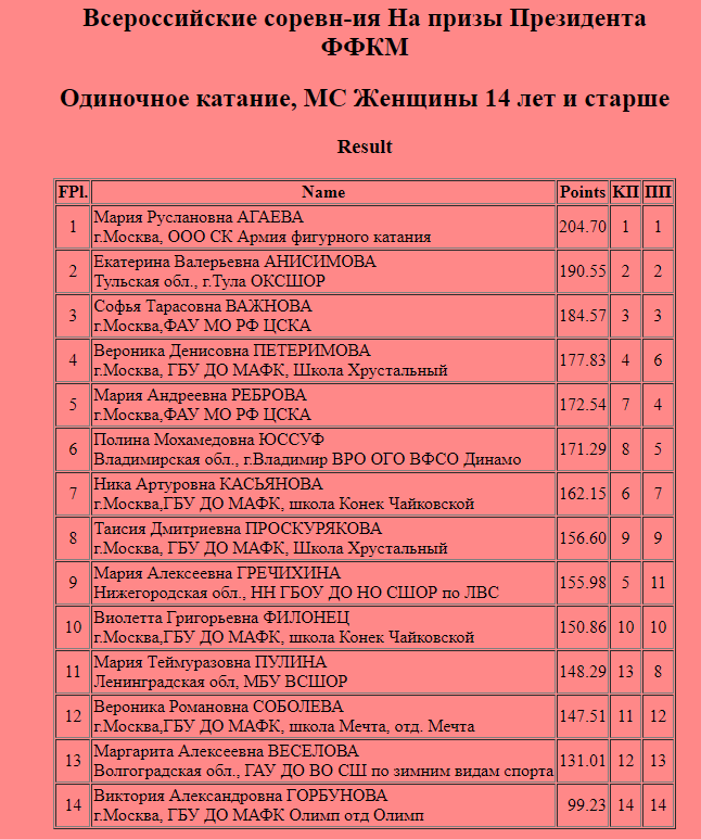 Всероссийские соревнования по фигурному катанию на коньках «На призы Президента ФФКМ»