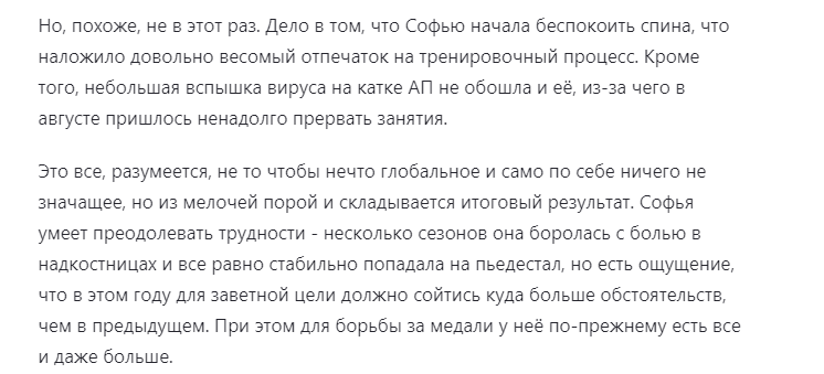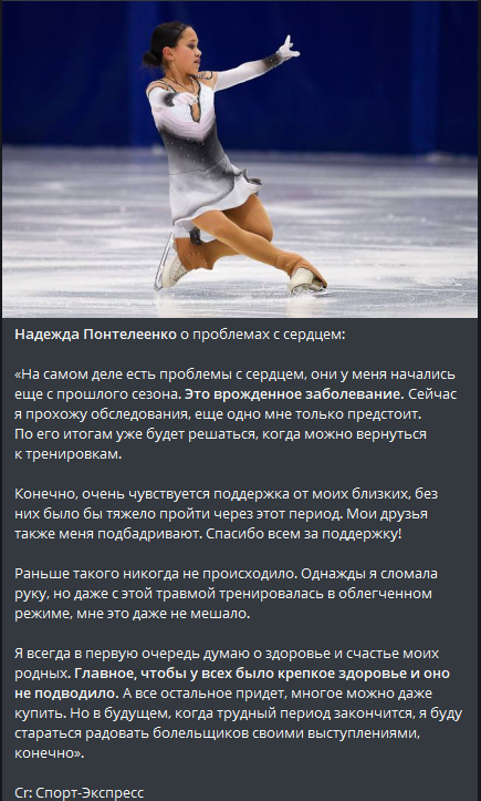 Здесь они совершенно ни при чем. В этот момент именно я же была с дочерью. Естественно, никогда на сборах у Плющенко нам никто не говорил: «Выпей такое лекарство, вам поможет». Не знаю, как можно здесь обвинять тренеров академии».