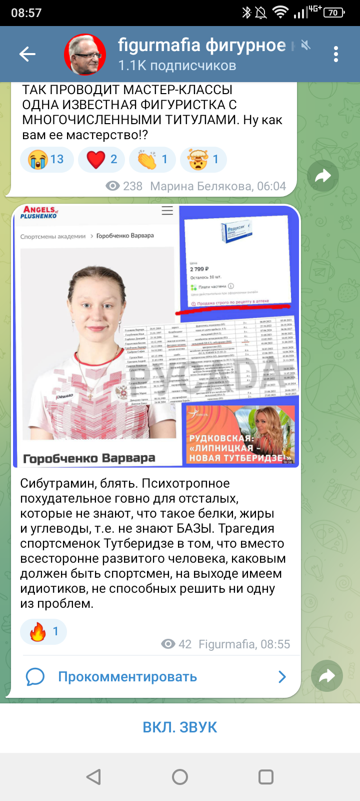 Тот же сибутрамин содержится в редуксине, который люди в возрасте принимают для снижения холестерина. Варя не могла его принимать, так как вес у нее был стабильный. Это видно по диспансеризациям два раза в год, по фото и видео. Если бы она его принимала, то наверняка бы весила не 58-59 кг, а гораздо меньше.