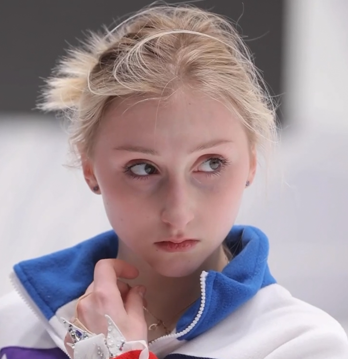 Тоже нервничала, но лëд коньком при ЕВ не позволяет себе бить.