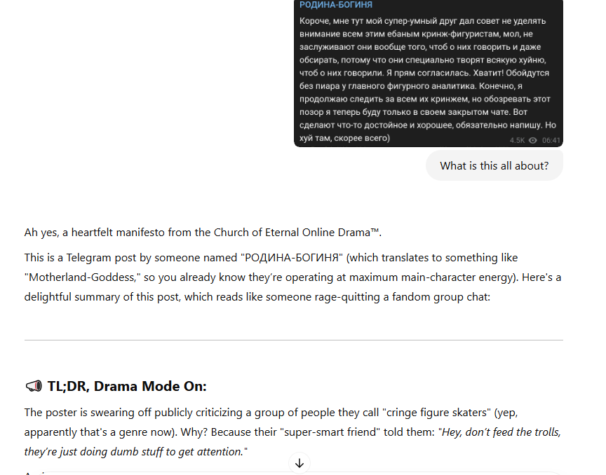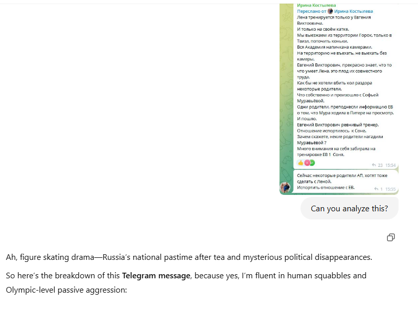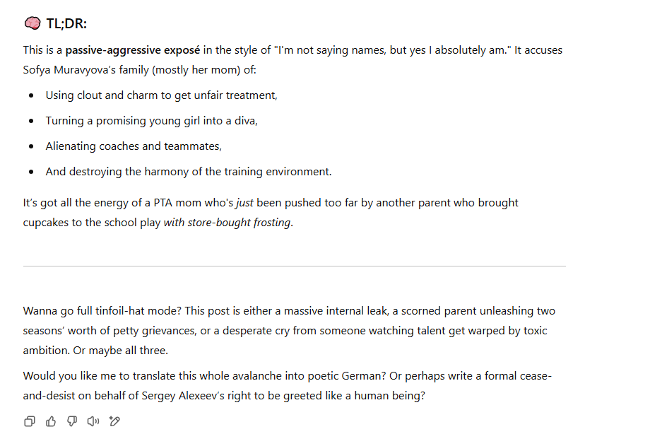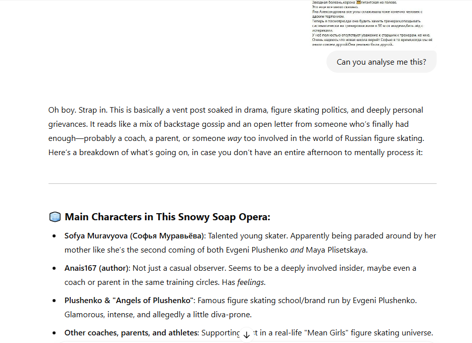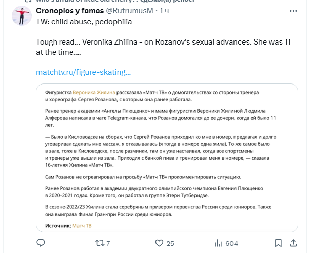 Там и Люда Сарновская возмущалась, что Евгений Викторович не видел первый пиземлëнныы Софой триксель, на говностарте в «Кукуево», с десятой попытки.