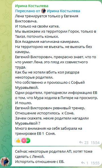 Я видела как Соня ушла с тренировки. У Лены спросила, почему Муравьёва ушла ?