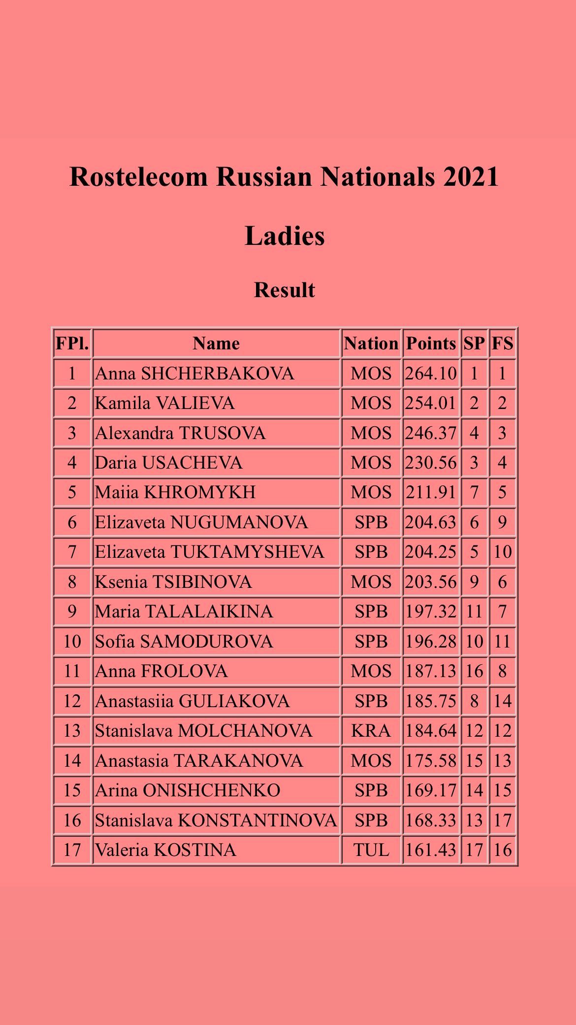 Табло: https://www.fsrussia.ru/results/2021/rusnat2021/RUS/index.htm