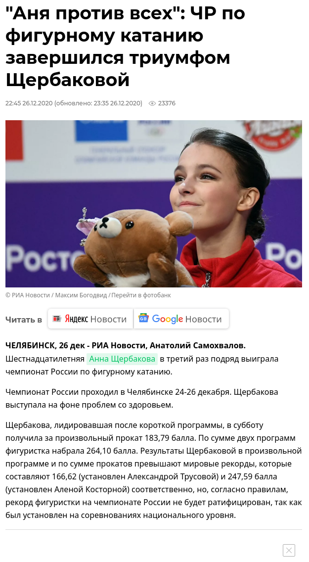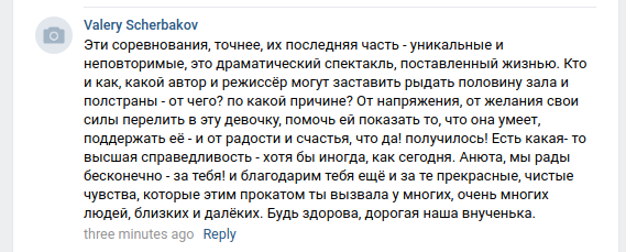 Героический Щербачок преодолевает себя и одерживает самую волевую, самую вымученную, самую ценную победу в своей карьере. Поздравляем эту невероятную девочку с безупречным прокатом и гордым званием трехкратной Чемпионки России. Отмечаем потрясающий дебют Валеро. Отдаем должное боевому характеру Трусика. В этом треде ждем награждений, показалок, празднуем то что у нас есть фэка, то что мы стали свидетелями лучшего турнира в обозримой части Вселенной.