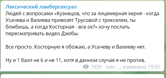 Смотрел короткую программу и обсуждал её итоги.