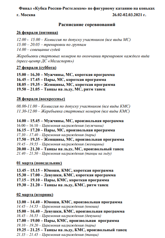 26 февраля - 2 марта - Финал Кубка России (Москва, Мегаспорт)