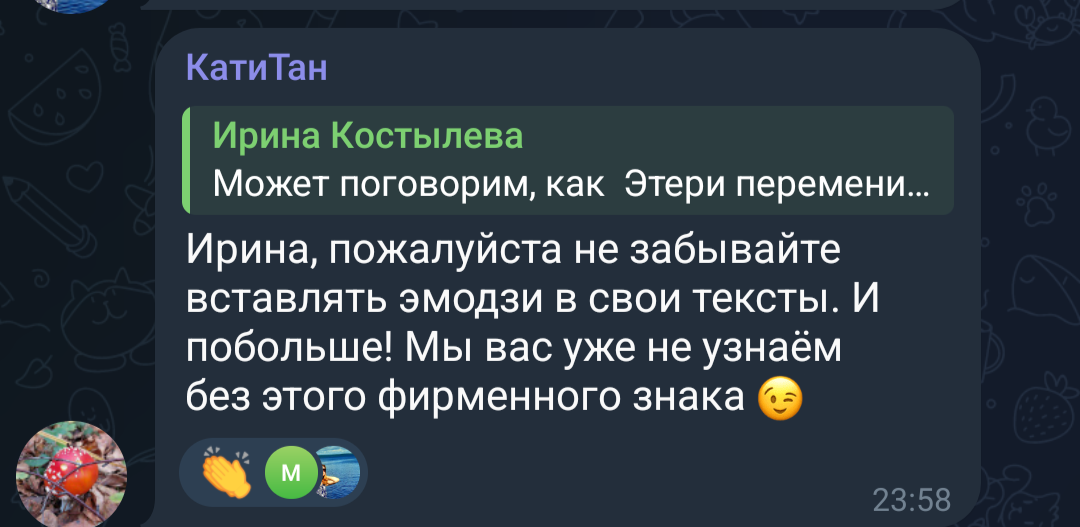 Ничего нормально объявить она тоже не могла, потому что пока они трудятся в АП, Косторочка не может в полной мере пользоваться своим телефоном. По стилю речи и грамматике понятно, что последние посты написаны не Косторочкой, а профессиональным копирайтером, но то же относится и к другим её постам, и к кружочкам, и к видео. Обычно ей дают телефон просто чтоб она записала "радостный" кружочек про репетиции Щелкунчика. И только очень редко ей отдают телефон, чтобы она сама могла выложить то, что хочет.