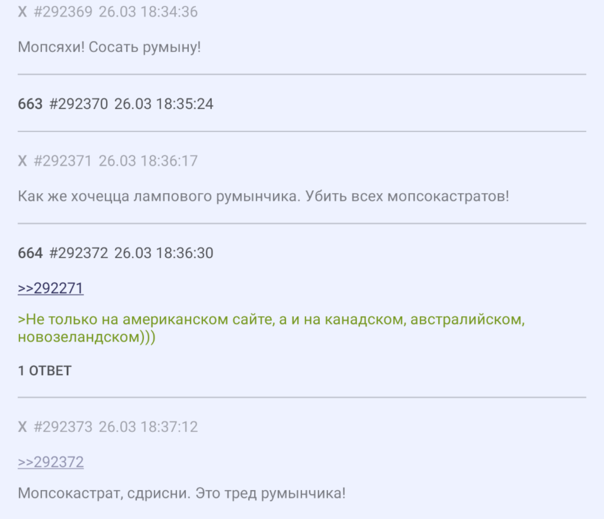 Кстати, у меня бан на фигсе до сих пор висит бан на год просто за оскорбление румуна и его подсосов. Такой хуйни не здесь не хочется