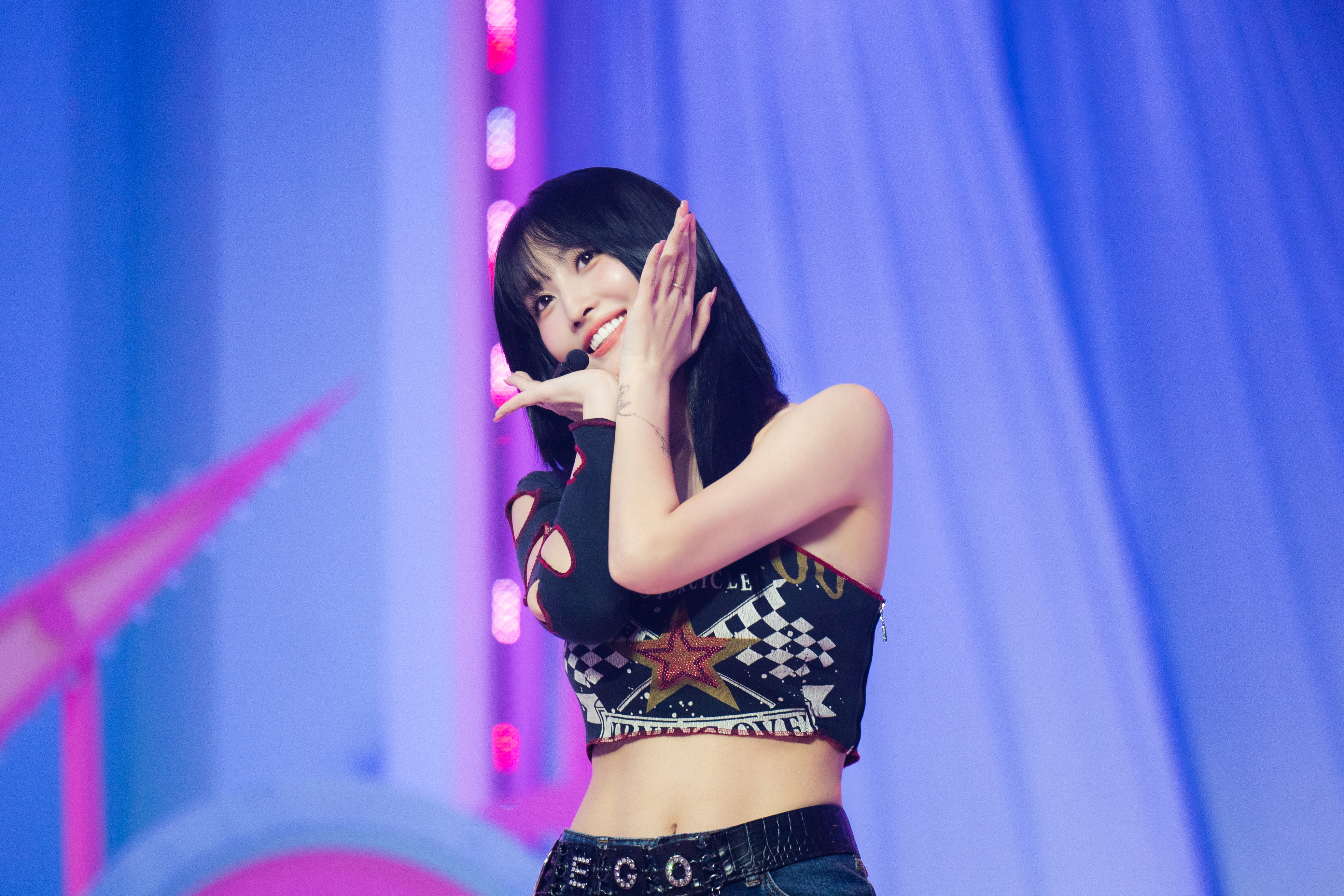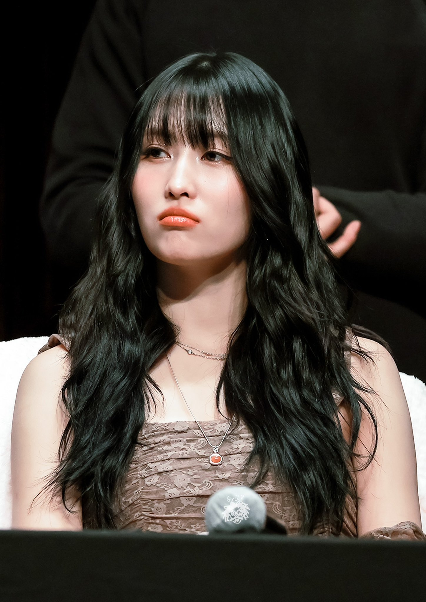 Chuu, смеясь, дополнила историю: "Она была вроде: "Я могу сделать это лучше!" после окончания дубля они говорили ей выплюнуть еду, но она просто "Все в порядке" (изображает продолжающего жевать человека)".
