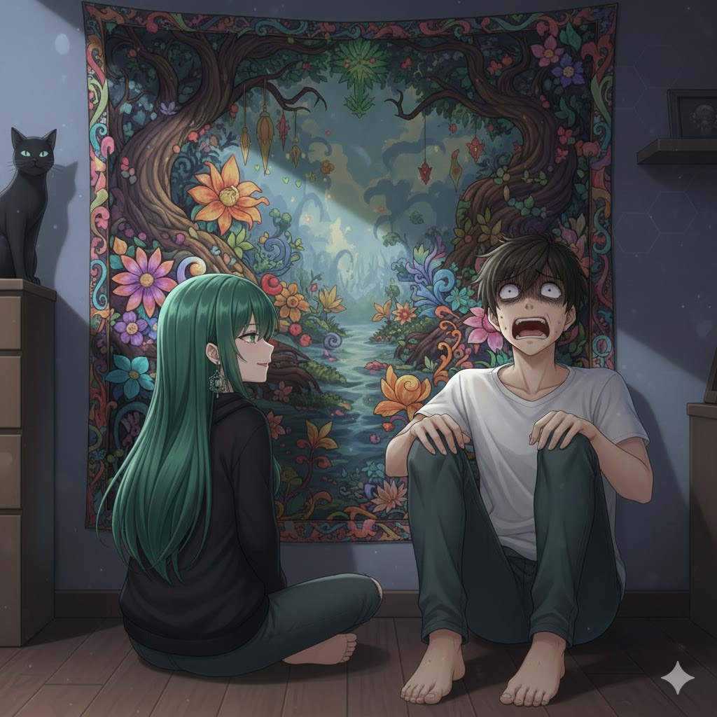 Но самый жуткий сон был такой: я проснулся и понял, что сижу на кровати и смотрю на кого-то, кто сидит внизу. Пригляделся это женщина с зелёными волосами. Что я чётко запомнил, так это её глаза и нос. Я закричал и только тогда проснулся по-настоящему, поняв, что это был сон.