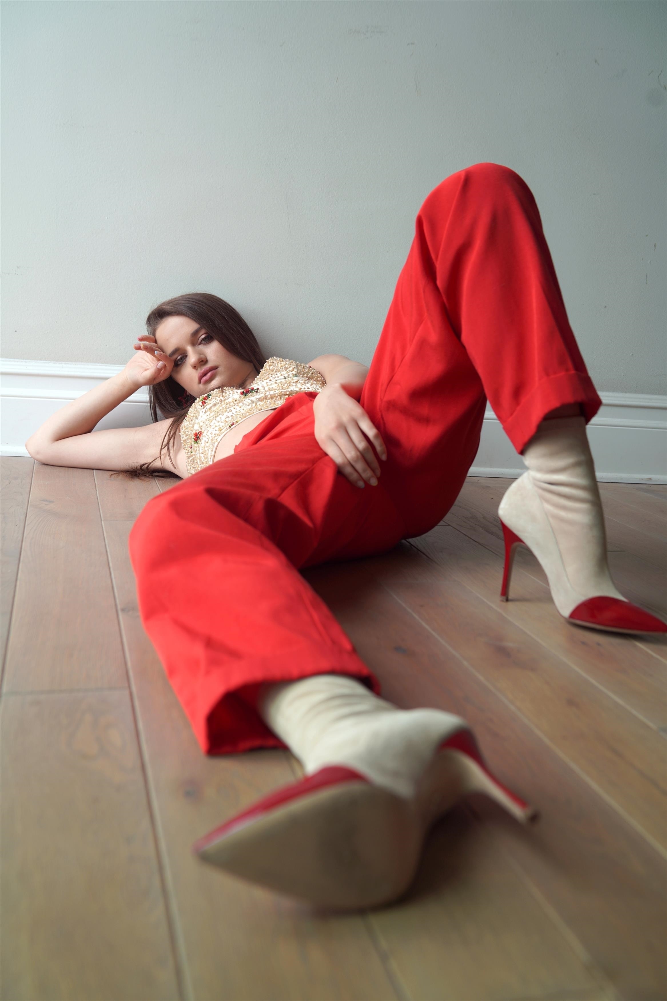 Заветные слова доходят до ушей актрисы, ей дали зеленый свет и она быстрыми, резкими движенями стягивает трусики насколько может, ведь движения сковывает неудобная поза. Кирнан глубоко выдыхает обжигая горящим дыханием собственные коленки и тугая струя мочи мощным напором выстреливает словно из фонтанчика, орошая её икры и пяточки желтыми каплями.